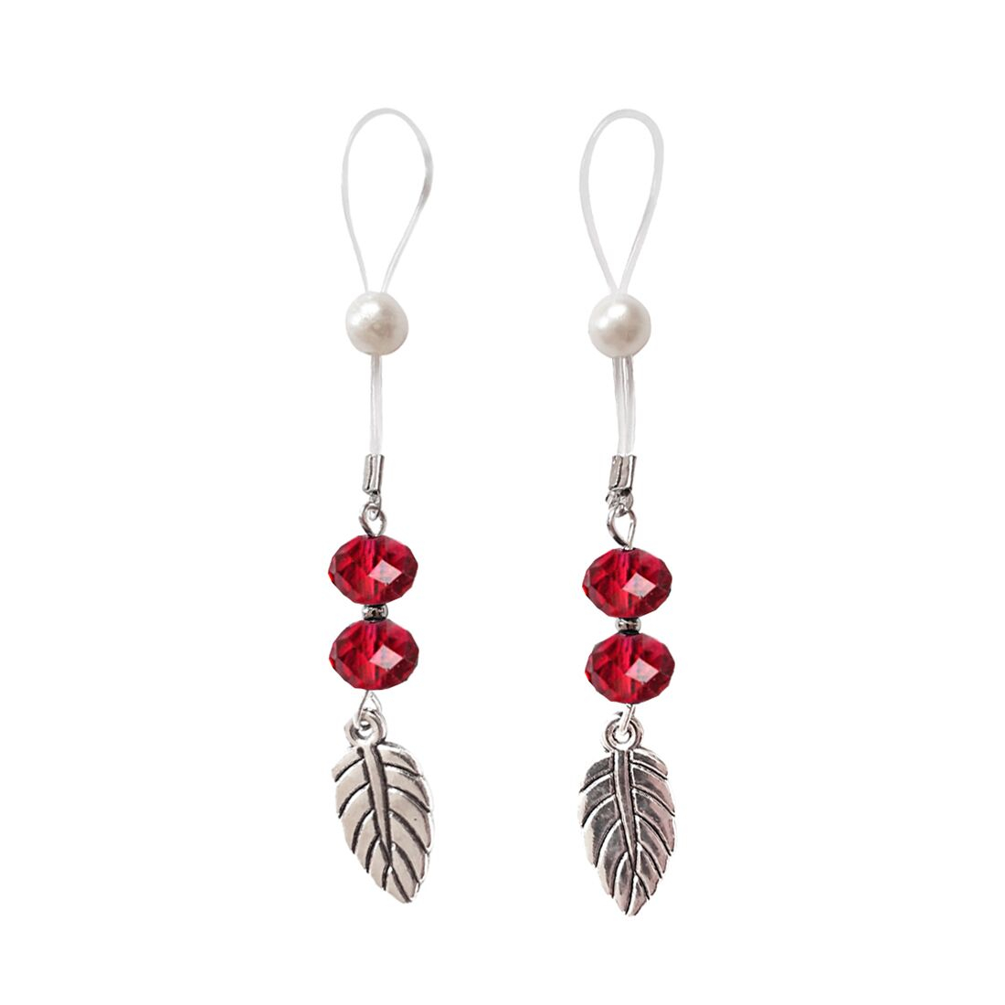 Цей невеликий аксесуар може звести з розуму вашого партнера. Підвіска являє собою силіконову нитку з металевим листочком і трьома намистинами — гладенькою перлиною і двома багатогранними червоними. Закріпити підвіску просто: варто лише трохи затягнути петельку перлинною бусинкою. Ви практично не відчуєте прикрасу на тілі — її маса лише шість грамів. Прикраси з намистинами та листочком для сосків Art of Sex – Nipple Jewelry Leaf доповнять ваш образ, зроблять його більш цікавим та пікантним, а також внесуть приємну різноманітність у любовну гру.