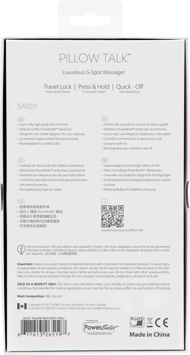 Ідеальні лінії, розкіш, що вабить і потужна вібрація - і ви просто не в силах встояти перед тим, щоб купити розкішний вібратор Pillow Talk - Sassy Teal c кристалом Swarovski. Особливий дизайн з гнучкою голівкою дозволяє ніжно впливати прямо на точку G відповідно до ваших анатомічних особливостей. Витончені лінії і вишуканий кристал роблять цю модель по-справжньому шикарною, а унікальна кнопка, для плавно наростаючої вібрації, забезпечить вам таке задоволення, про яке ви могли тільки мріяти.