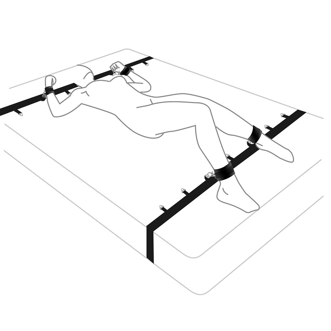 Розтяжка являє собою набір із широких ременів з кільцями та двох пар регульованих наручників, які кріпляться до кілець. Ремені надягаються на матрац, а до зап’ясть і щиколоток партнера кріпляться наручники. Поворухнутися неможливо, єдина рухлива частина тіла, доступна прив’язаному партнеру, — голова. Ротом можна робити все, що забажає ваш Домінант. Для більш якісного прожарювання рекомендуємо перевернути партнера на живіт і знову пристебнути до розтяжки.