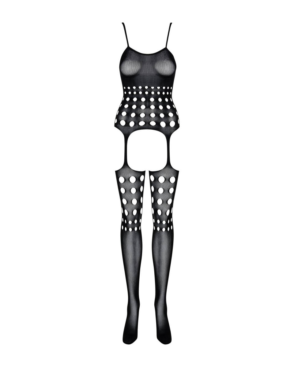 Створіть ефектний образ для сміливої ??фотосесії або рандеву, що запам’ятовується, з вашим обранцем, купіть бодістокінг Obsessive Bodystocking G310. Зухвала панчоха на все тіло з напівпрозорого матеріалу, що імітує топ, підв’язки та панчохи, доповнена оригінальним декором у вигляді круглих вирізів — це справжня спокуса.