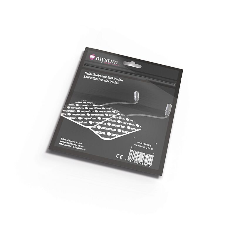 Електроди розміром 40х40 мм підходять для будь-яких ігор з електростимуляторами Mystim. Можуть бути використані кілька разів, поки клейкий шар буде добре утримувати їх на тілі.