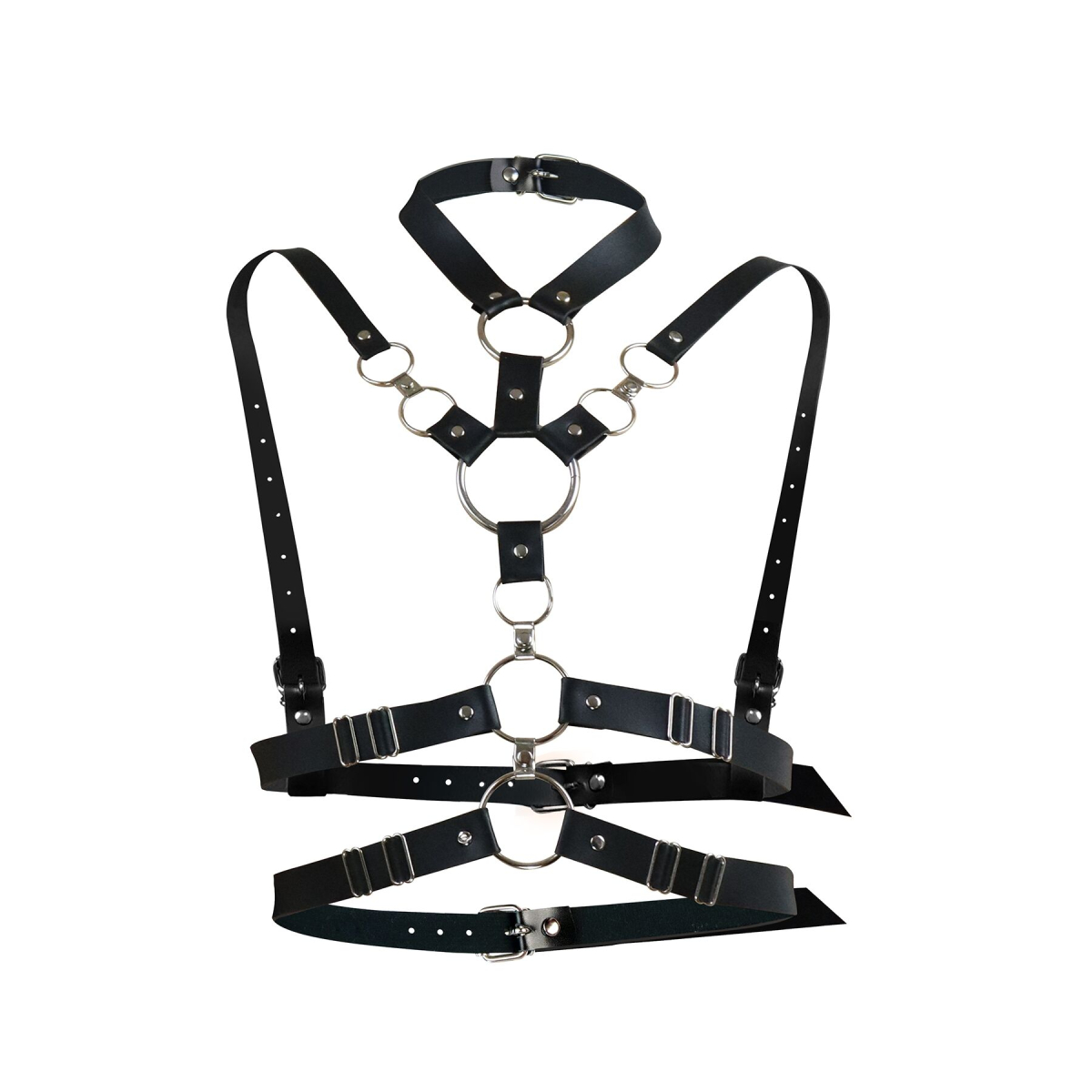 Шкіряна портупея має регульовані ремені, щоб створити ідеальну комфортну посадку по фігурі і підкреслити красу тіла та акцентувати увагу на ваших формах. Металеві кільця, які прикрашають цю портупею, додають елемент екстравагантності та створюють загадковий образ, який вигідно виділяє вашу жіночність та сексуальність.