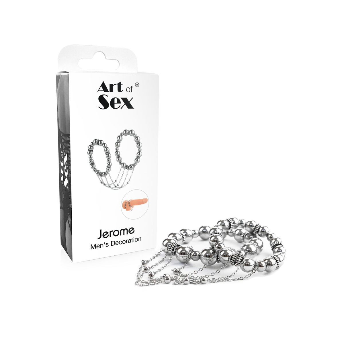 Інтимна прикраса ручної роботи для пенісу та мошонки. Два браслетики з декоративних бусин міцно поєднані між собою. Окрім естетичної привабливості, прикраса також легко стимулює статеві органи під час сексу, додаючи нових відчуттів.