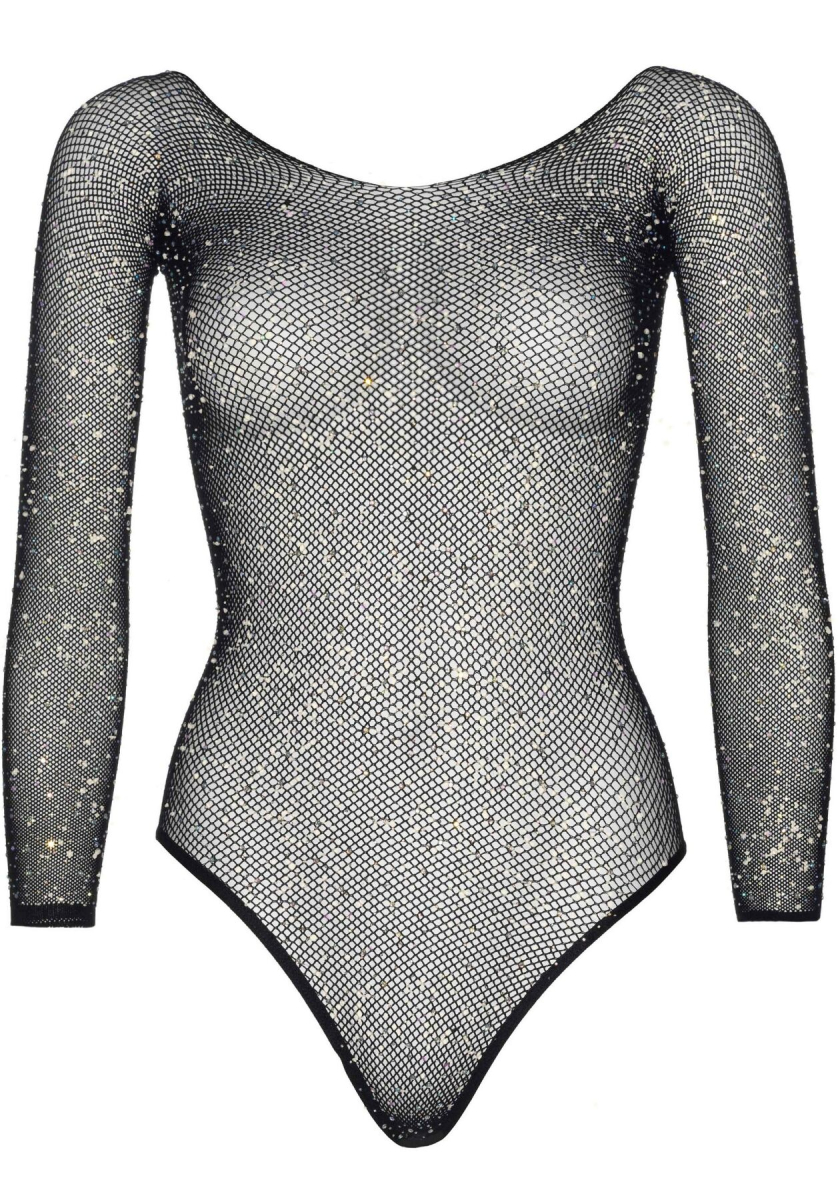 Сітчасте боді зі стразами Leg Avenue Crystalized fishnet bodysuit Black One Size - фото