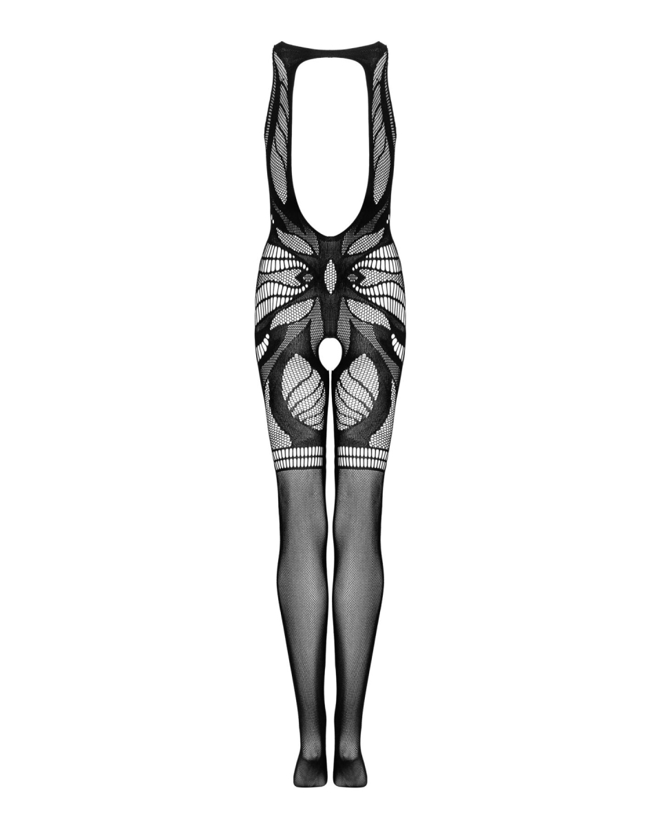 Сітчастий бодістокінг без рукавів Obsessive Bodystocking G331 виконаний з м’якої еластичної тканини, яка добре тягнеться у всіх напрямках. Комбінація сітки з клітинками різного діаметра створює унікальний і дуже цікавий малюнок. Топ з високим комірцем і відкритими плечима прикриває ореоли й соски, залишаючи оголеними спокусливі півкулі. Відкрита спинка привертає увагу. Від центра малюнка, який розташований на пупку, у різні боки розходяться виконані з різної сітки «промені», утворюючи на тілі звабливу вигадливу картину. На сідницях малюнок повторюється. Відкрита промежина спокушає обіцянкою пристрасної ночі.