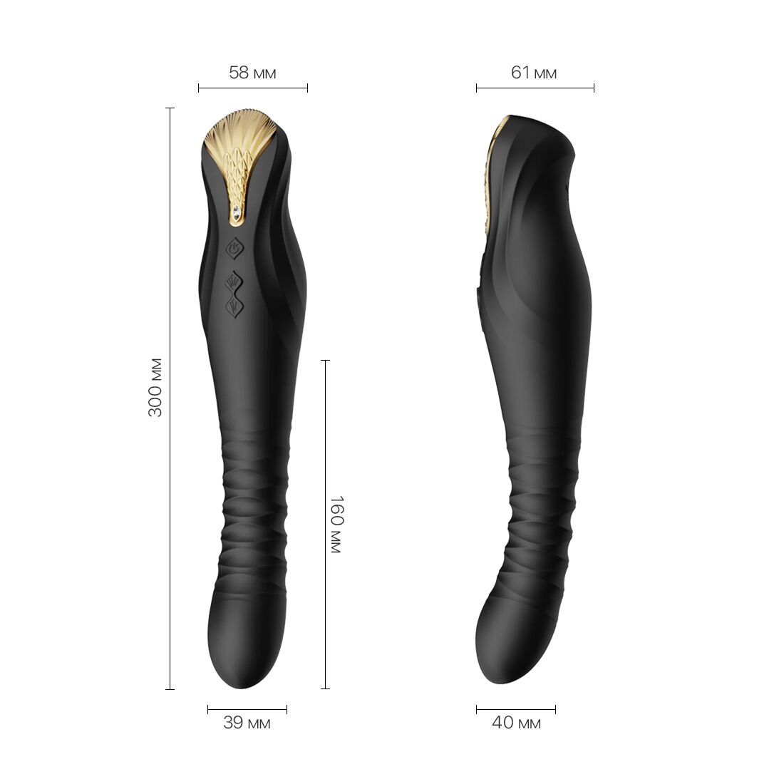 • відчутний розмір: ввідна довжина 16 см, діаметр головки 3,9 см;
