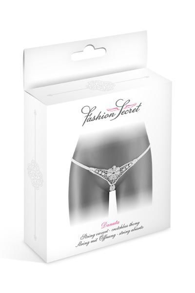 Якщо ви любите невеликі й акуратні трусики з родзинкою, то вам точно варто придбати трусики-стрінги Fashion Secret DANUTA White. Мініатюрні, з мереживною квіткою і подвійною Т-лінією, вони прикрасять вашу фігуру і налаштують на еротичний лад.
