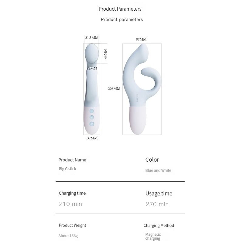 Абсолютно точне влучення! Пропонуємо купити вібратор-кролик для точки G KISTOY Big G — саме він змусить вас тремтіти від задоволення та стогнати від подвійних оргазмів. Адже він ідеально потрапляє на точку G і клітор, якими б у вас не були анатомічні особливості. Потужний мотор створює вібрації, які відчуваються і в стовбурі, й у відростку (5 режимів), і для кожного режиму можна регулювати інтенсивність (5 рівнів) — цілих 25 комбінацій для задоволення! Під час ввімкнення іграшки стовбур автоматично підігрівається до комфортної температури для ідеальних відчуттів під час введення. Вібратор повністю водонепроникний.