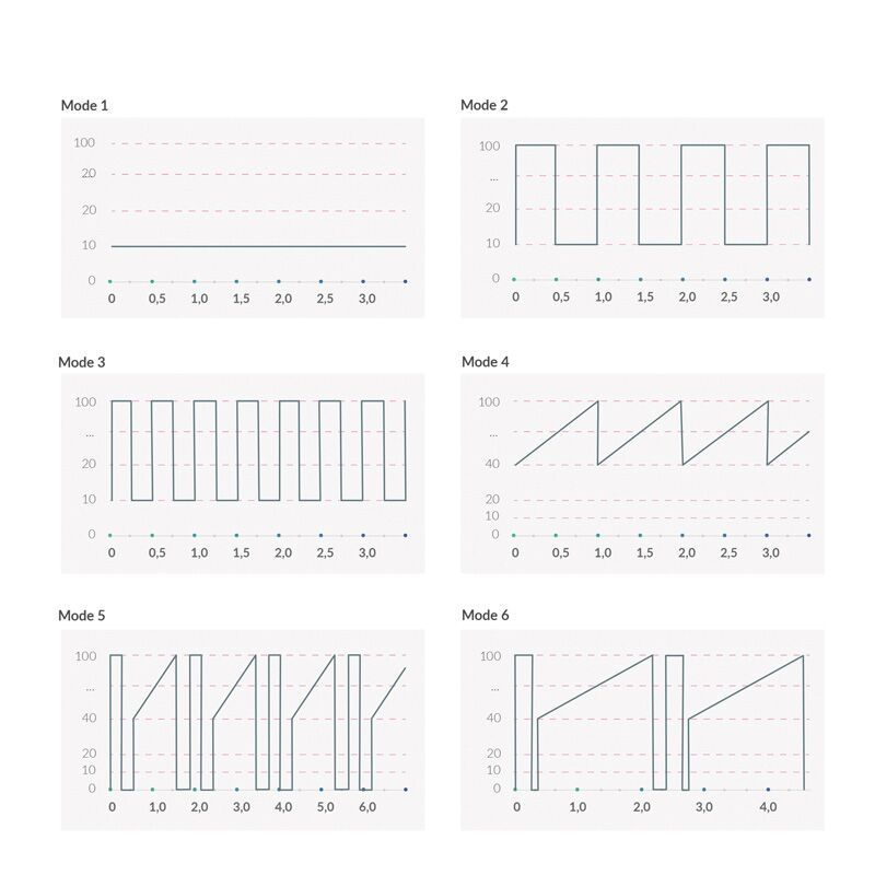 для кожного режиму передбачено по 5 рівнів інтенсивності, від дуже ніжного впливу до суперпотужного для вибухових оргазмів!