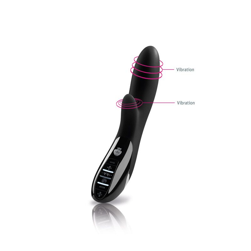 вібратор з відростком для стимуляції клітора і двома потужними моторами для задоволення своїх еротичних бажань, що працює на 8 програмах з 5 рівнями інтенсивності - відчувайте вібрацію всередині та ззовні, разом і поперемінно, так, як потрібно саме вам;