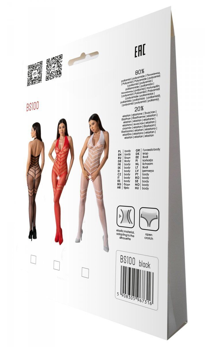 Бодістокінг BS100 з чарівним плетінням у вигляді м’яких піків, спрямованих вниз, приковує погляд до найсолодших місць і створює передчуття палкої пристрасті.