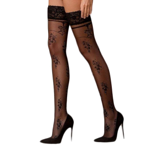 Елегантні панчохи Passion ST119 5 чорні, на ажурній силіконовій резинці, з квітковим декором та люрексовою ниткою із шовковистого та еластичного матеріалу вигідно підкреслюють стрункість ніжок. Мереживна підв’язка з квітковим декором приховує самопідтримувальну резинку і візуально подовжує ніжку. Багатий дизайн із великою кількістю квіткових елементів, доповнених срібною люрексовою ниткою, створює казковий та романтичний образ. Панчохи надійно прилягають до шкіри, максимально комфортні та чудово поєднуються з корсетами або мереживною білизною.