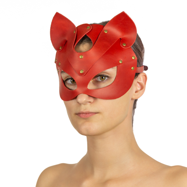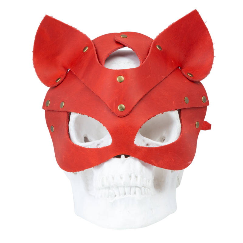 Червона маска кішки LOVECRAFT з натуральної шкіри: