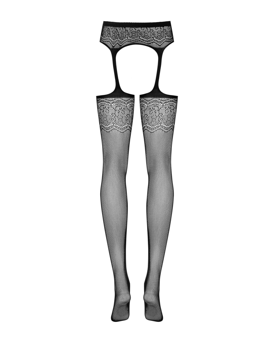 Витончені чорнісітчасті панчохи-стокінги з квітковим малюнком Obsessive Garter stockings S207 виконані з м’якого сітчастого матеріалу, який ніби друга шкіра обтягує ніжки. Верх панчохи та пояс прикрашені квітковим візерунком, роблячи образ ніжним та витонченим. Імітовані резинки для панчіх виконані з більш щільного матеріалу, щоб панчоха добре тримала форму і не «скочувався» з ніжки. Відкрита промежина та оголені сідниці без зайвих натяків запрошують запалити вогонь пристрасті.