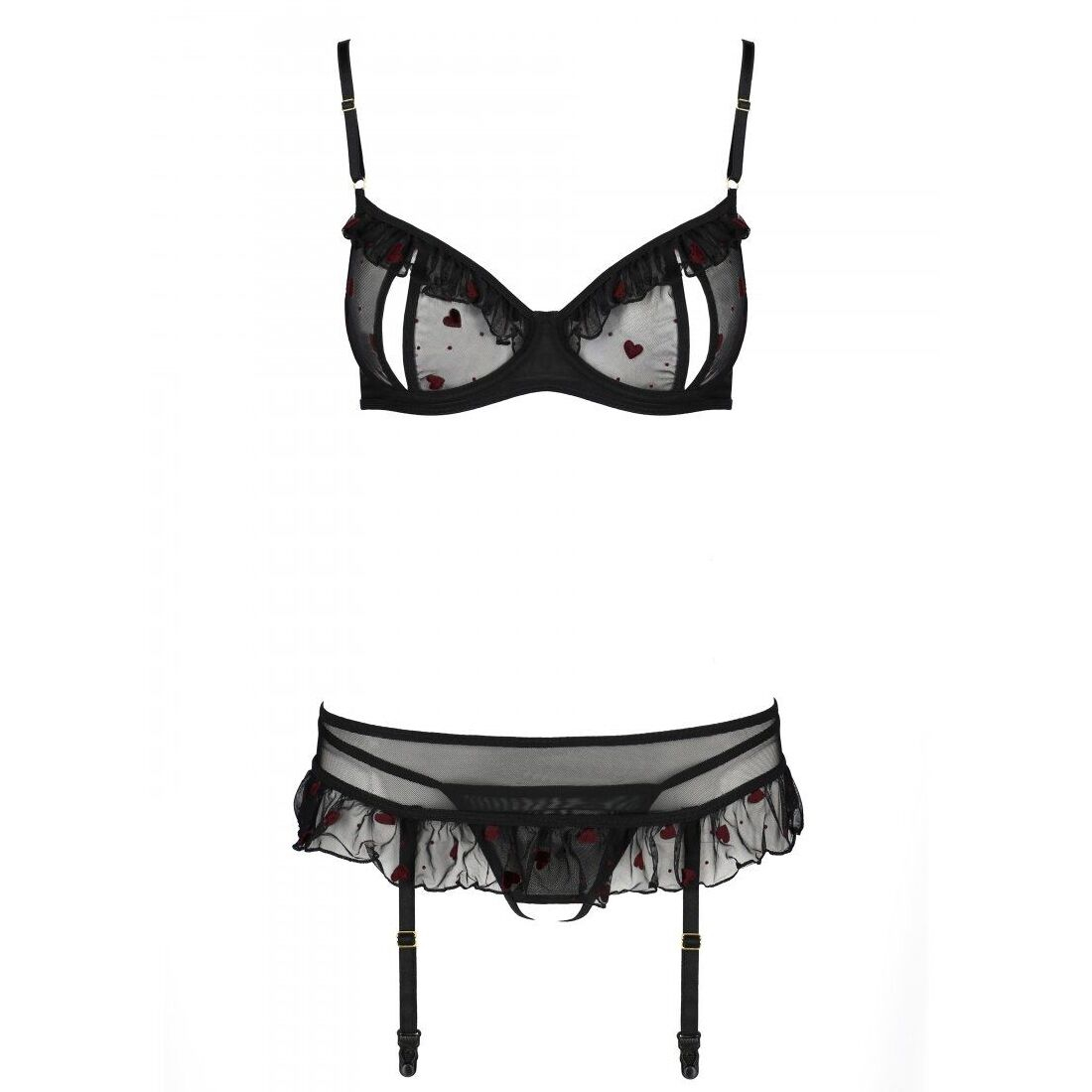 Шукаєте незвичайну білизну, спокусливу, комфортну та якісну? Ви його знайшли! Рекомендуємо купити сексуальний комплект з поясом для панчіх LOVELIA SET black L/XL - Passion. У комплект входить шикарний бюстгальтер з щільною чашкою на кісточках, яка відмінно тримає груди, пояс для панчіх зі спідничкою і трусики-стрінги з доступом - все, щоб звичайне побачення перетворити у фантастичну еротичну пригоду.