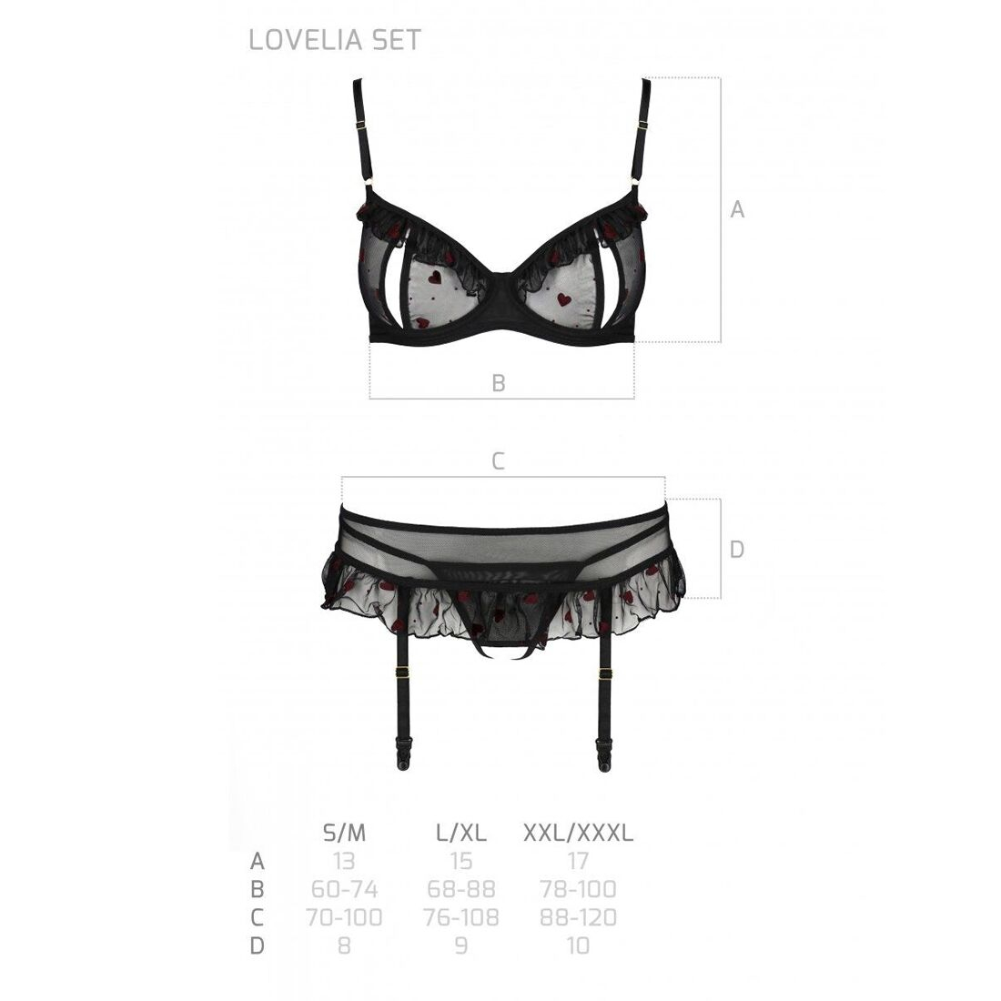 Сексуальний комплект з поясом для панчіх LOVELIA SET black XXL/XXXL - Passion виконаний з приємного еластичного матеріалу і відмінно сідає по фігурі завдяки можливості регулювання за об’ємом і висоті бюстгальтера.