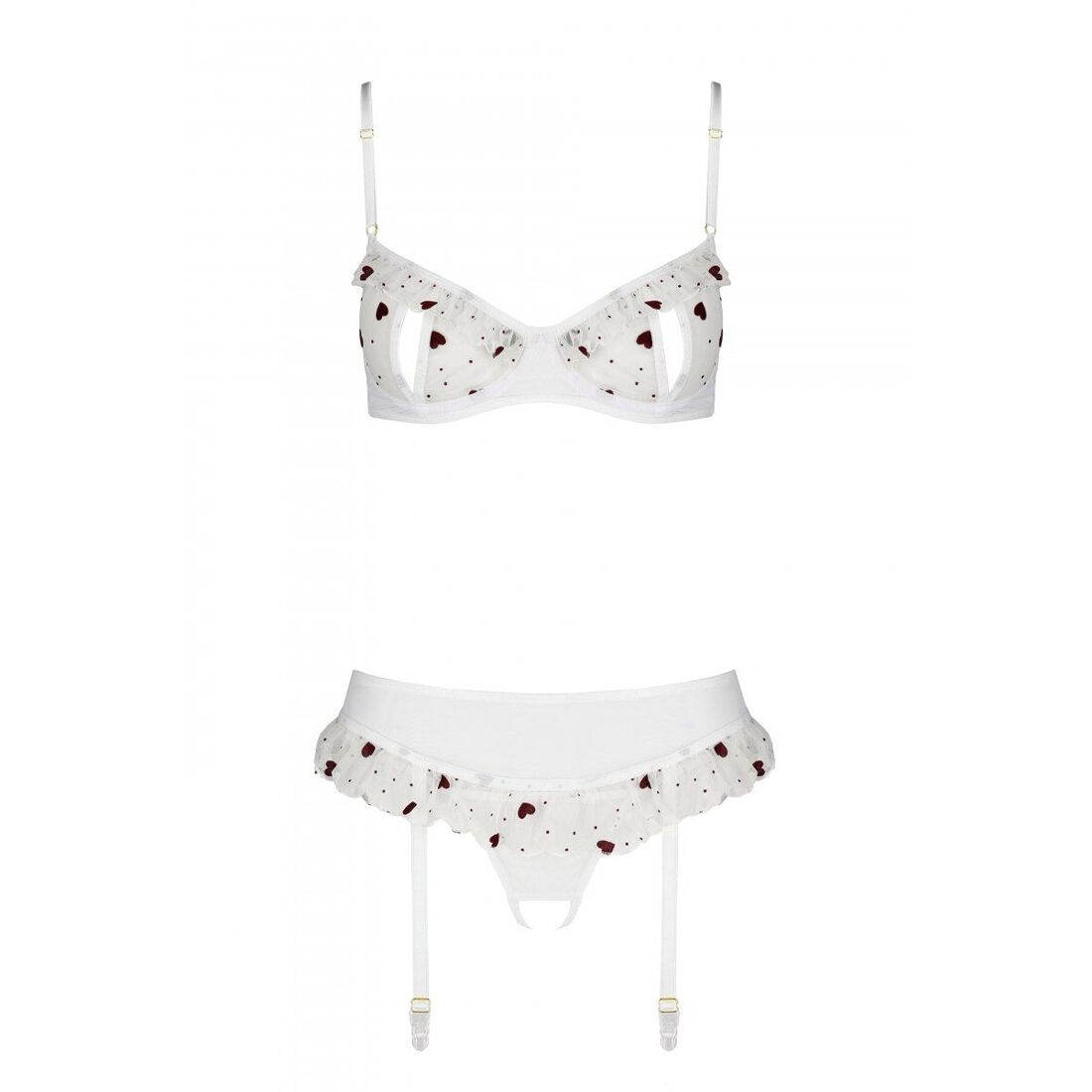 Шукаєте незвичайну білизну, спокусливу, комфортну та якісну? Ви його знайшли! Рекомендуємо купити сексуальний комплект з поясом для панчіх LOVELIA SET white XXL/XXXL - Passion. У комплект входить шикарний бюстгальтер з щільною чашкою на кісточках, яка відмінно тримає груди, пояс для панчіх зі спідничкою і трусики-стрінги з доступом - все, щоб звичайне побачення перетворити у фантастичну еротичну пригоду.