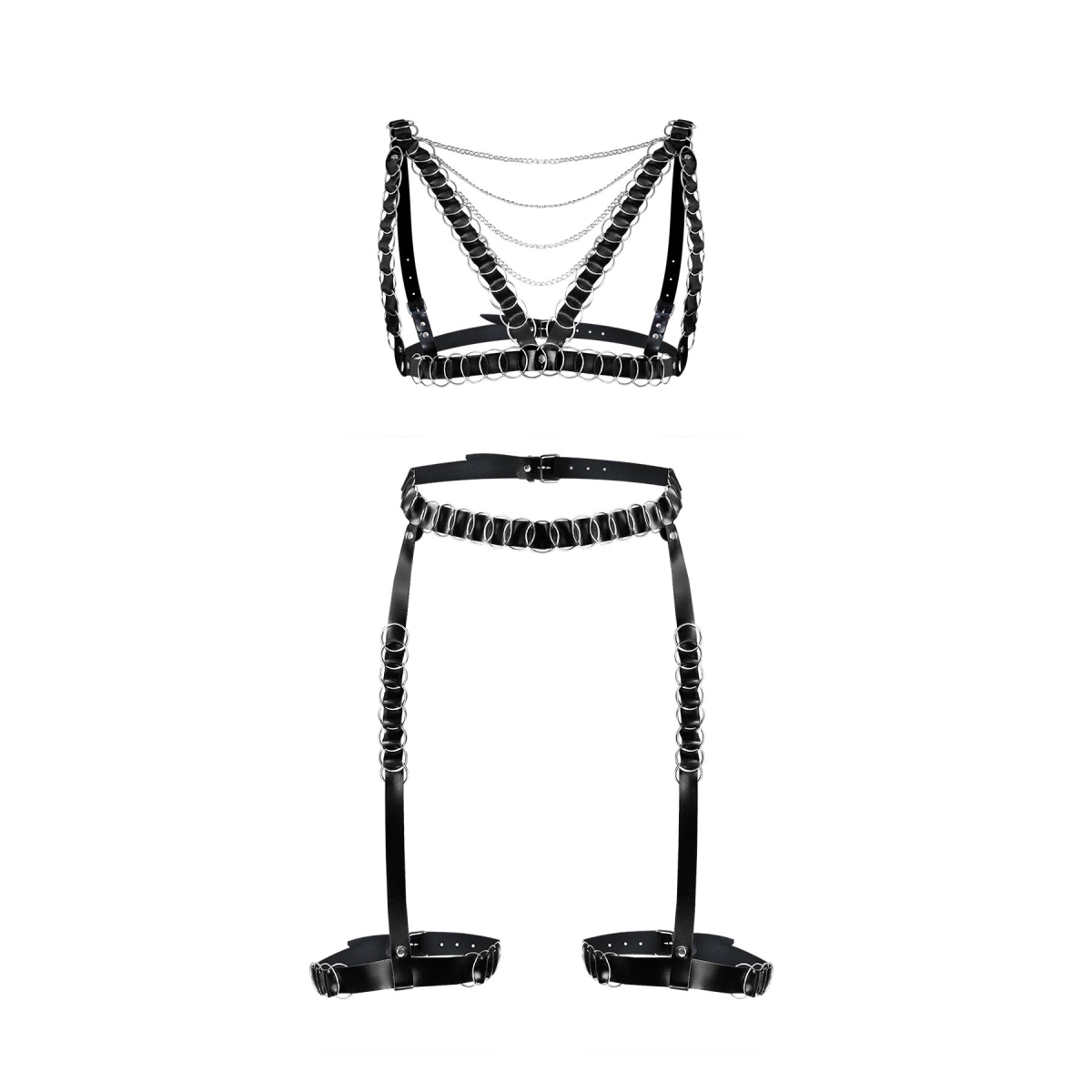Стильний і спокусливий дизайн гартерів і портупеї підкреслює вашу жіночність і створює інтригуючий образ. Декоративні елементи у вигляді кілець є цікавими акцентами, які допоможуть привернути увагу до вашого тіла. Ремені на гартерах і портупеї регулюються, забезпечуючи точну посадку і зручність у використанні. Це дає змогу створити індивідуалізований образ і підкреслити ваші форми.