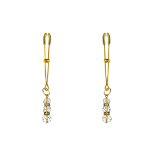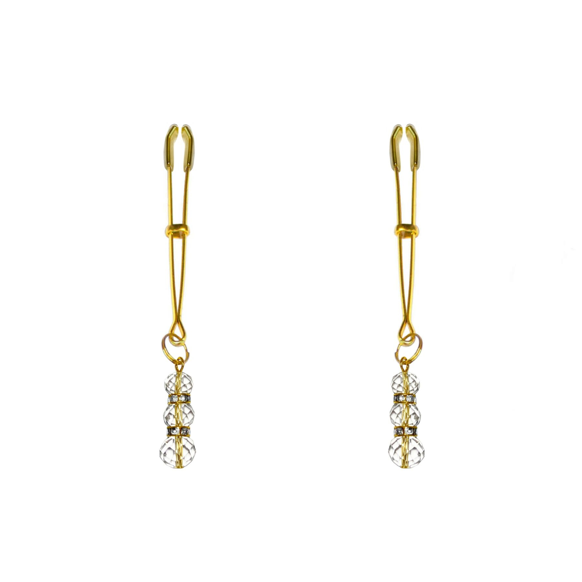 Красиво і боляче - ось, що потрібно для ідеальних затискачів для сосків! Рекомендуємо придбати тонкі затискачі для сосків з підвіскою Feral Feelings - Thin nipple clamps, золото/прозорий, які виглядають як дорога прикраса і при цьому подарують вражаючі відчуття. Ступінь стиснення регулюється.