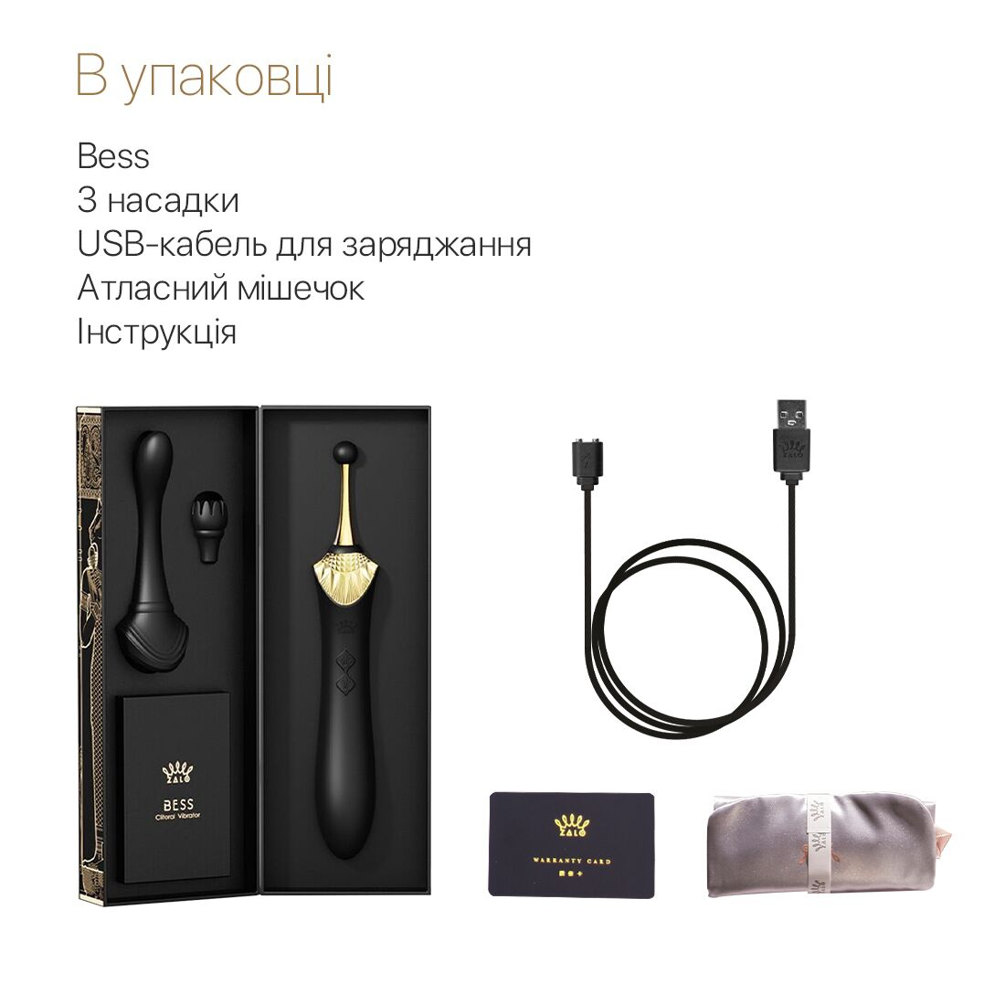 Разом із вагінально-кліторальним вібратором Zalo — Bess ви отримаєте три насадки, які ідеально підійдуть для впливу на улюблені ерогенні зони.