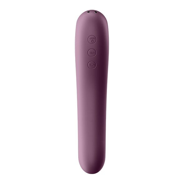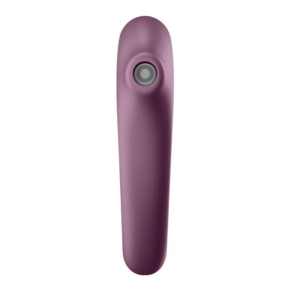 Пропонуємо купити вакуумний стимулятор з вібрацією Satisfyer Dual Kiss — витончений та стильний двосторонній девайс для внутрішньої та зовнішньої стимуляції. Одна його сторона стимулює клітор за допомогою повітряних хвиль (технологія Air Pulse), а інша — глибоко вібрує для вражаючої вагінальної стимуляції та дії на точку G. 2 мотори з автономним управлінням, 11 рівнів інтенсивності вакууму плюс 10 режимів вібрації та повна водонепроникність — все, що потрібно для оргазмів!