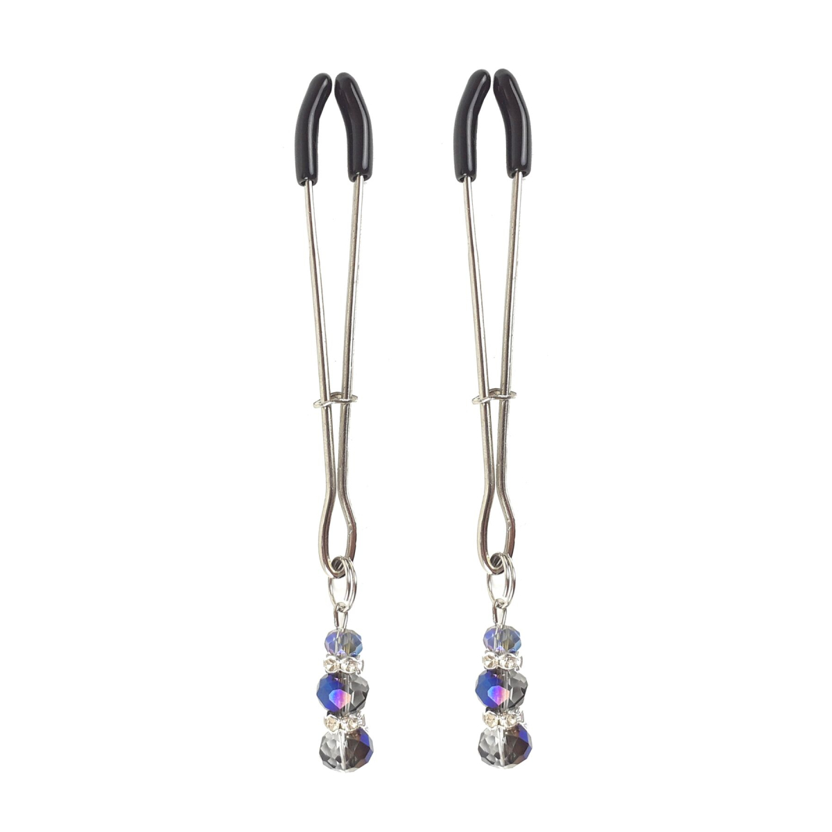 Затискачі для сосків з декоративними кристалами для ваших рольових ігор та сесій. Затискачі на соски оснащені м'якими силіконовими наконечниками та металевим бігунком, який дозволить регулювати ступеня стиснення.